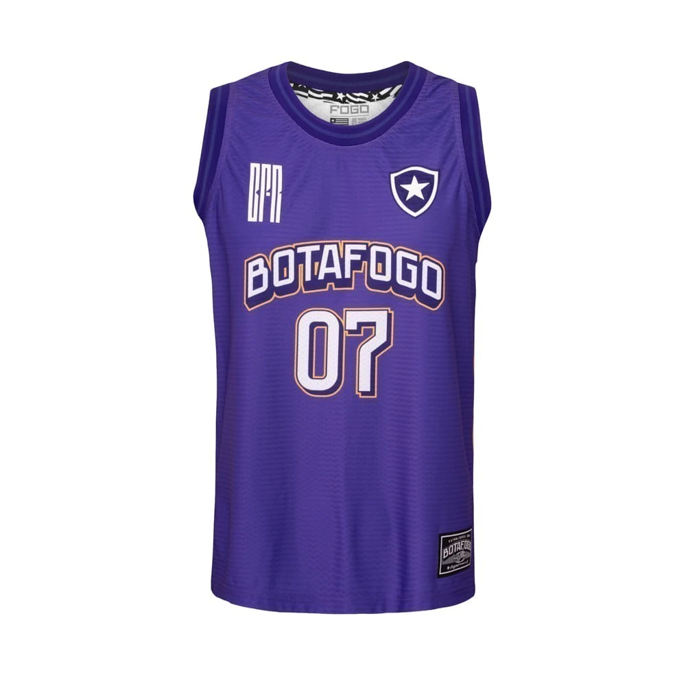 Transforme seu visual e demonstre sua paixão pelo Botafogo com a Regata Botafogo Roxa, uma peça única que combina o estilo do basquete em homenagem ao icônico Lakers.